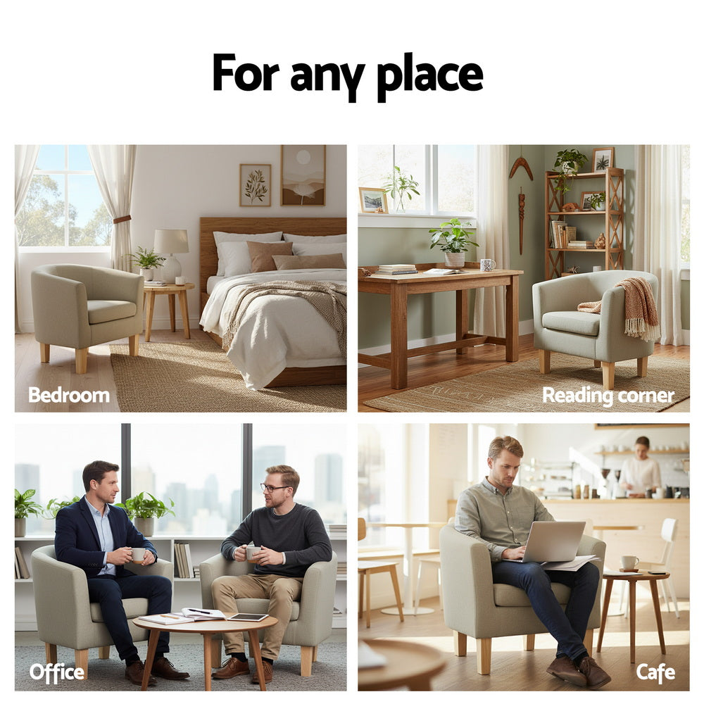 Regular price $244.99 Sale price $216.99 Save $28.00Sophistication extraordinaire. Timeless appeal. The Artiss Abby Armchair is the epitome of modernistic style with its clean lines and simple profile. Upholstered in faux linen fabric, the Abby Armchair is a full size chair with generous seating space. The extra thick foam padding ensures ultimate comfort with exceptional support while the contoured backrest feels ever so elegant and smooth. Together with a reinforced wooden frame and sturdy rubber wood legs, the Abby Armchair is guaranteed to stand up to durable use for many years to come. Not least, with its neutral beige hues, the Abby Armchair is a seamless match for any home d��cor. Don't settle for any armchair in your home. Make it an Artiss Abby Armchair and experience the elegant chic that it can add to your discerning lifestyle.