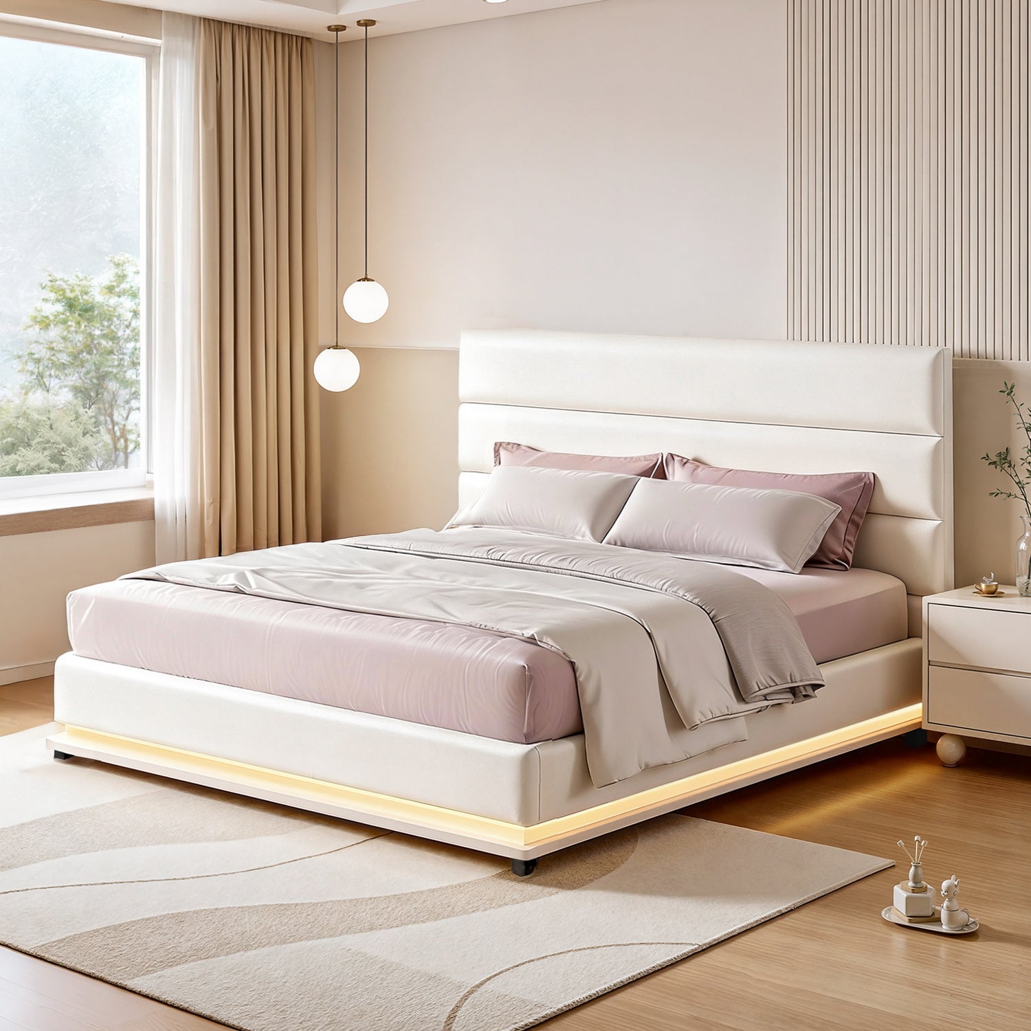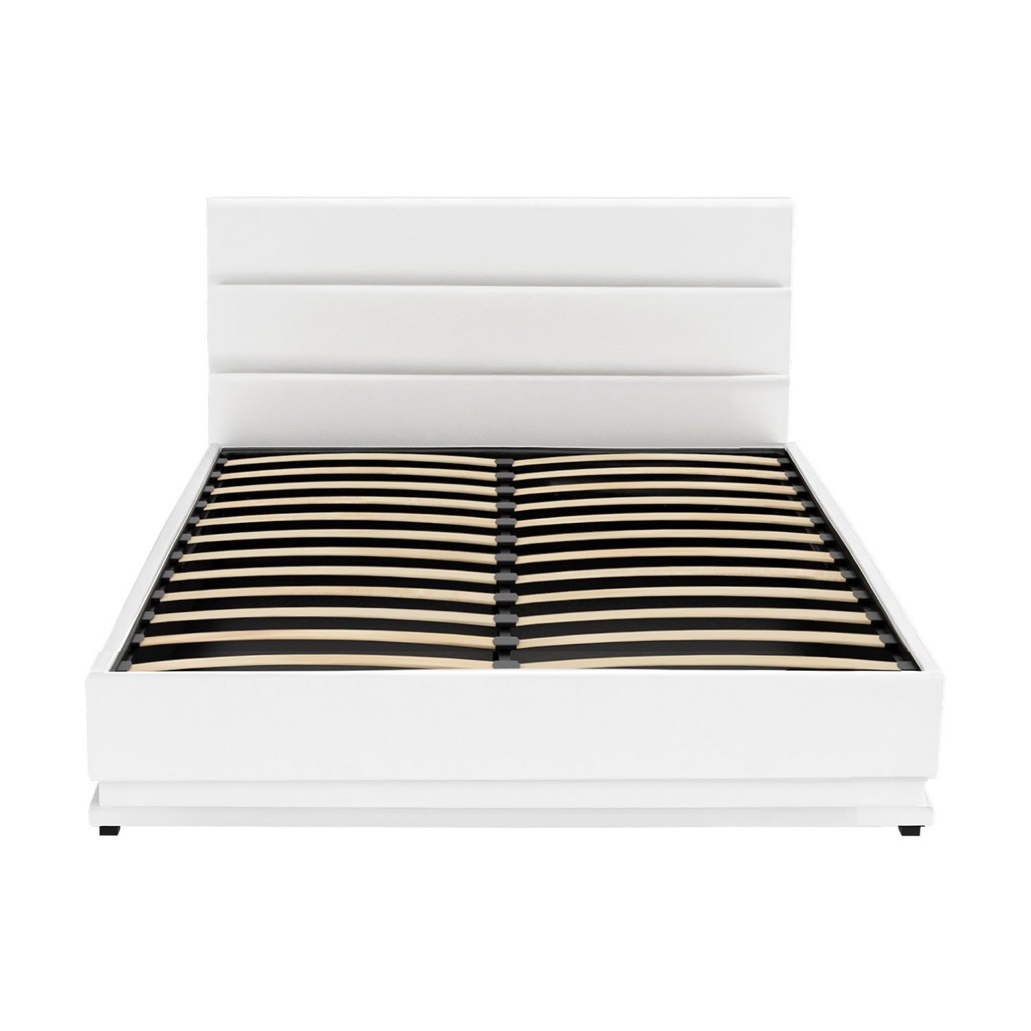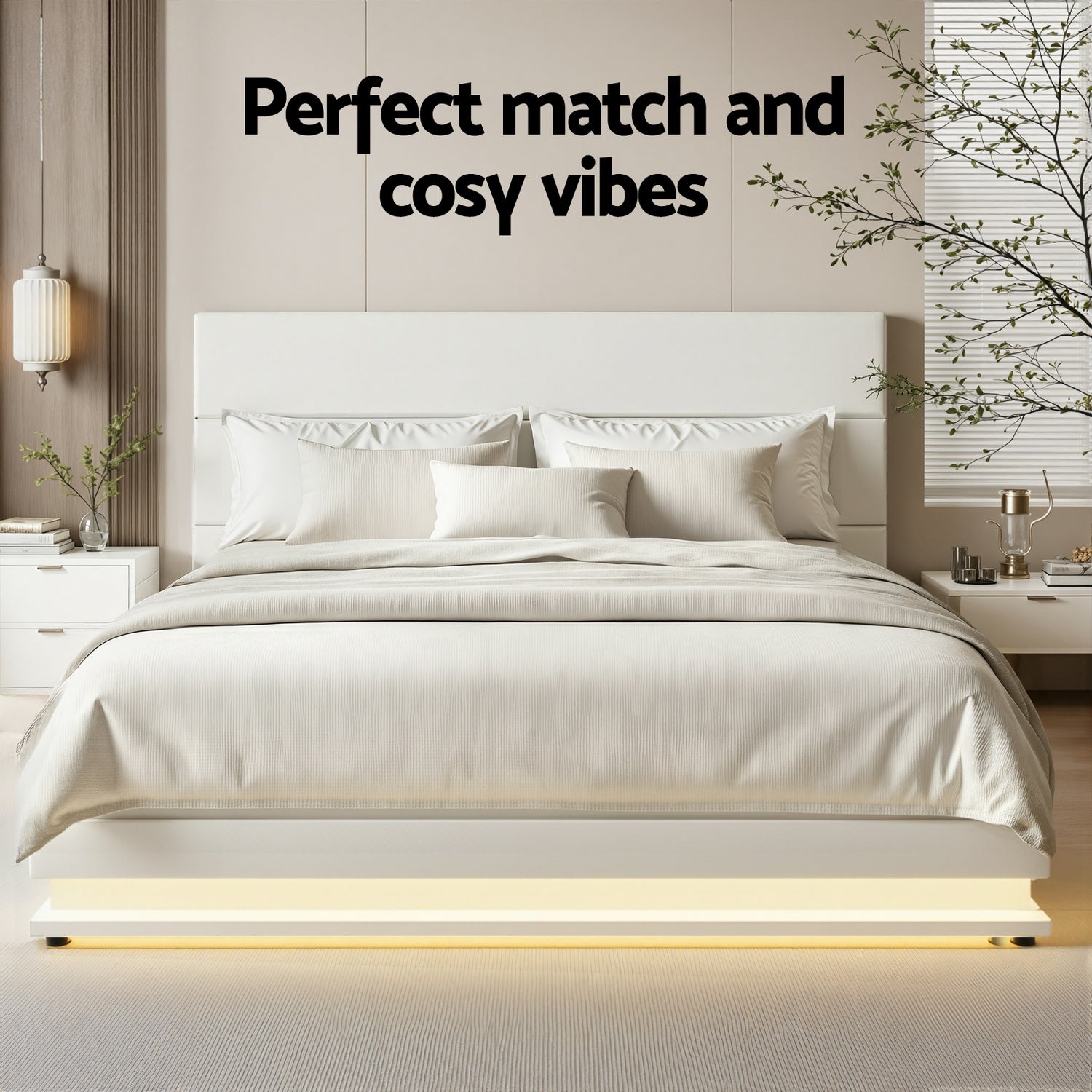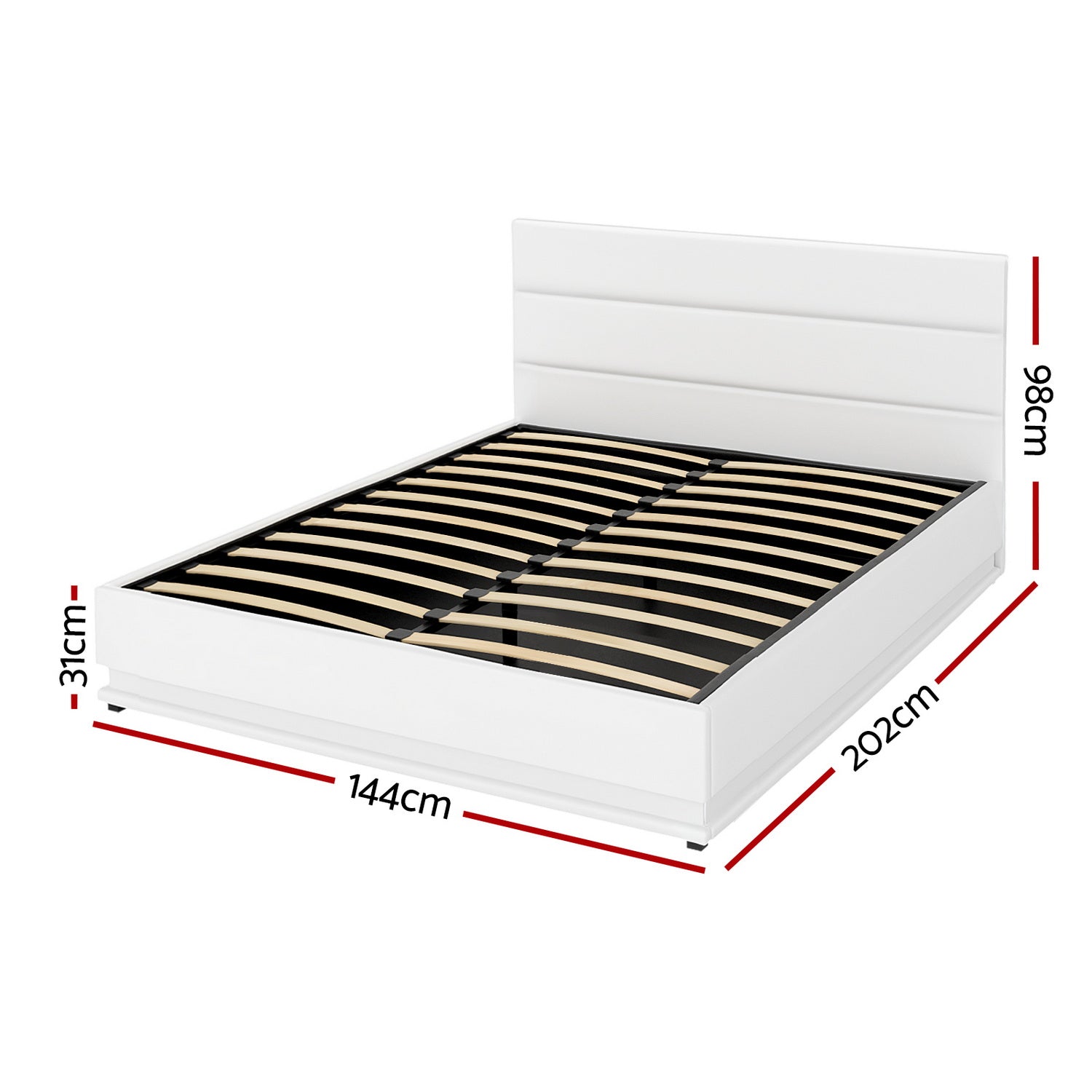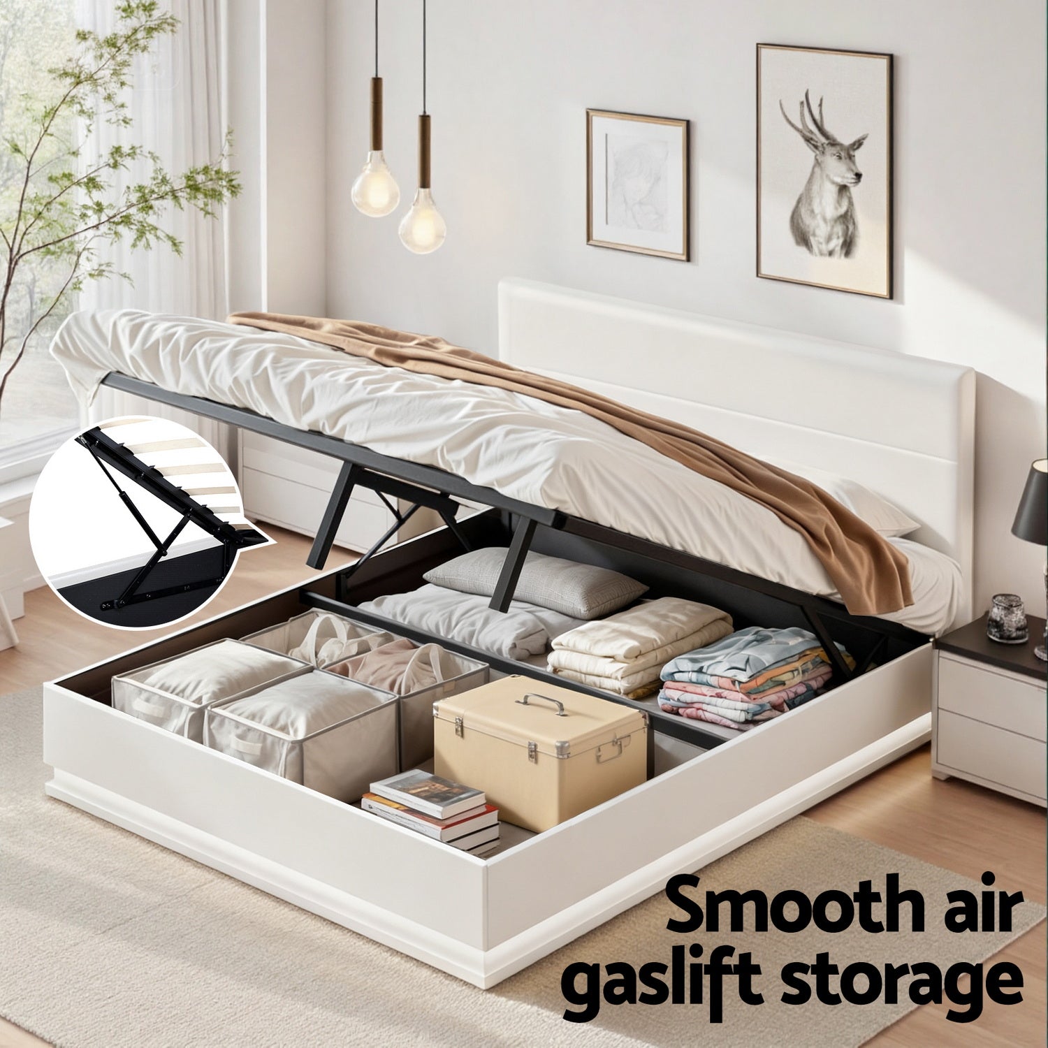 Regular price $549.99When is a bed more than a bed? When it uses our Artiss LUMI Gas Lift Bed Frame. On the outside, this bed frame looks like just any other quality bed frame. Beautifully padded with generous foam and covered in PVC leather. Strong steel frame with high grade steel centre rails, heavy-duty bars and arched slat base. Large and comfortable headboard. But with one easy gas lift of the bed base, the bed frame becomes an instant storage area with acres of space for your bedding essentials. Simply store your extra pillows, bed sheets, cushions and more in the storage compartment and hide them away for the season. Even better, you no longer have to fumble in the dark for a light switch in the middle of the night with this bed frame. It comes with built-in LED lighting that can be customised into 16 different colours and 4 flashing modes to suit your preference. Not only will the illuminated bed frame create a beautiful ambience, it will also save you from buying extra bedside lamps or nightlights. So do not just get any bed frame, get this 3-in-1 bed frame to expand your home storage capacity and light up your nights with just a lift of your hands.