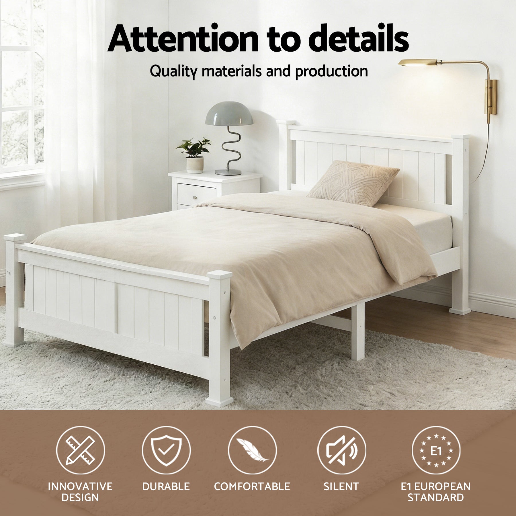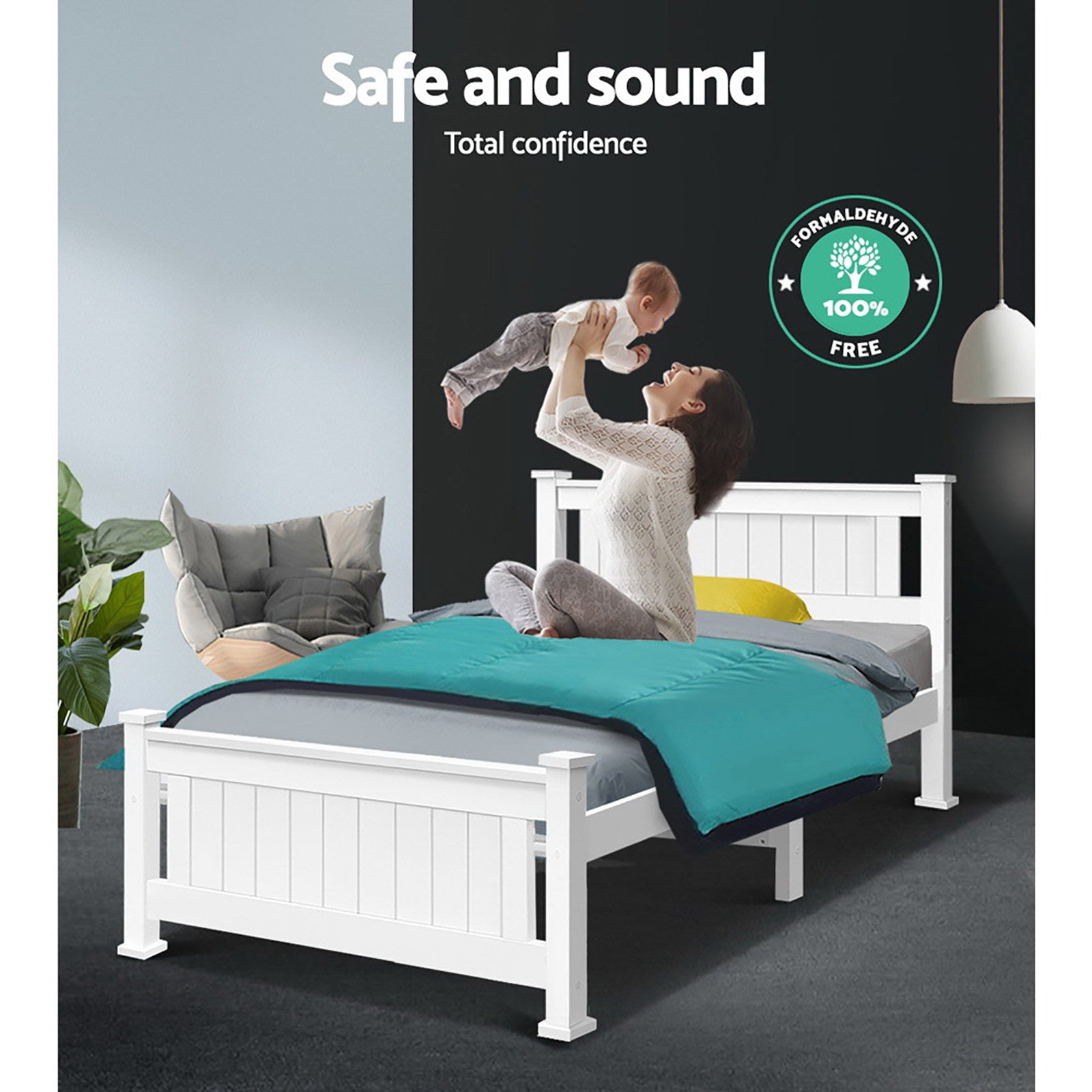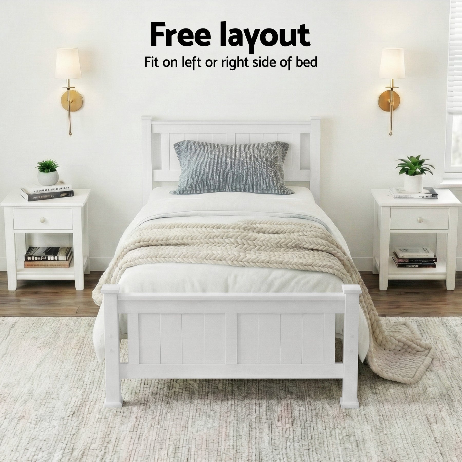 Made of solid pine wood, the Bed Frame is an all-round functional design that is compatible with most Australian sized mattresses and ideal for use by both young and old alike.