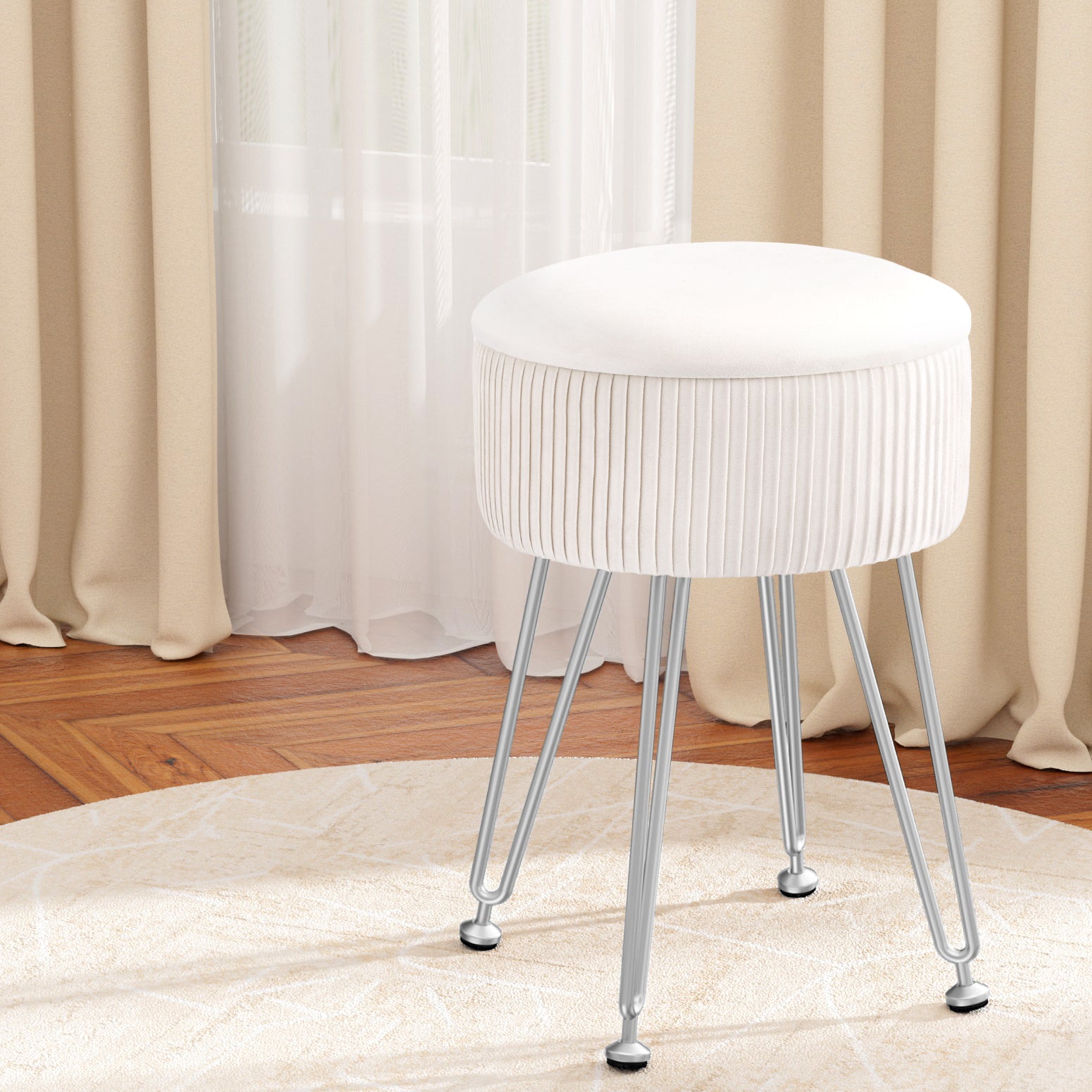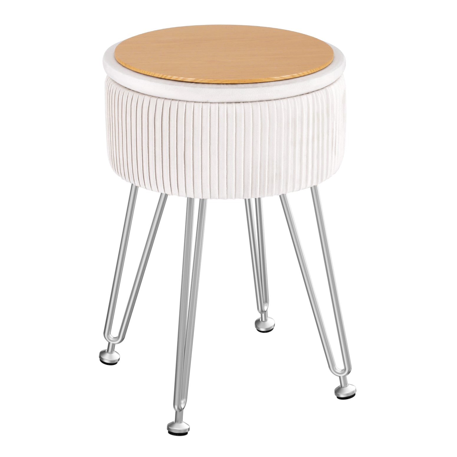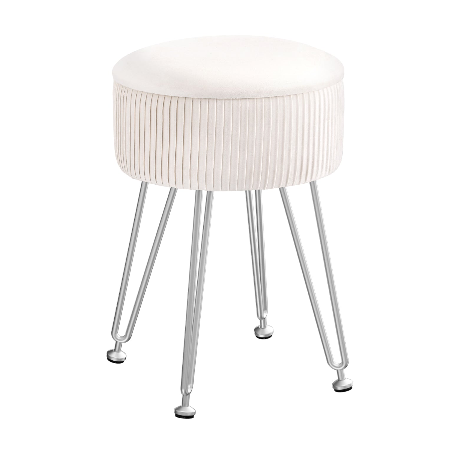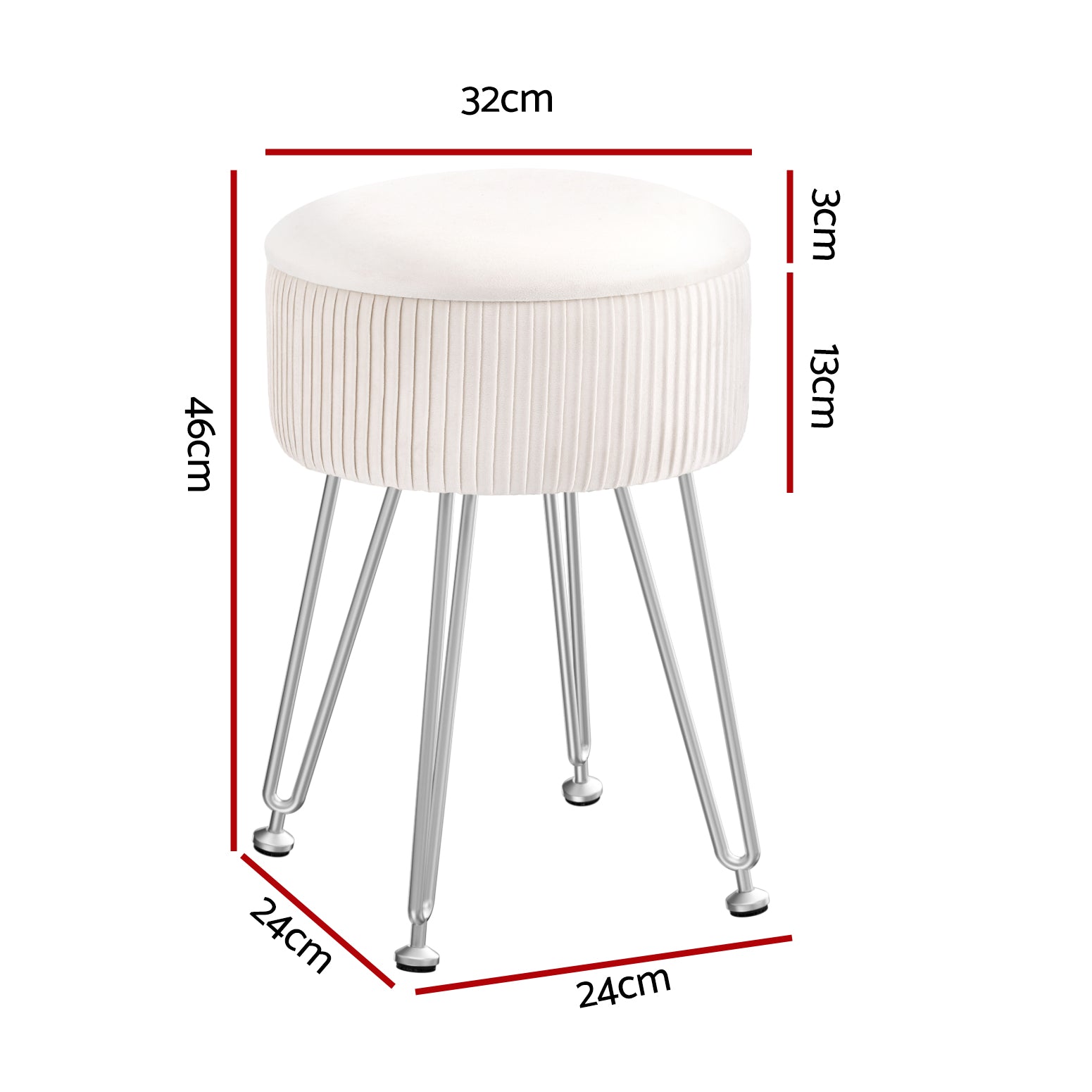 Regular price $107.99This round velvet Artiss footstool features a reversible table lid, vertical stripe design, durable MDF frame, high-resilience foam padding, and adjustable metal legs with floor protectors. Use it as a footstool, coffee table, and storage. Simple assembly required.