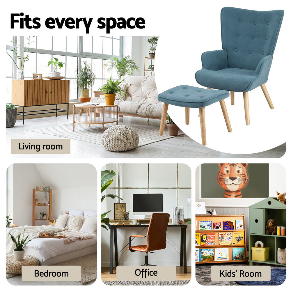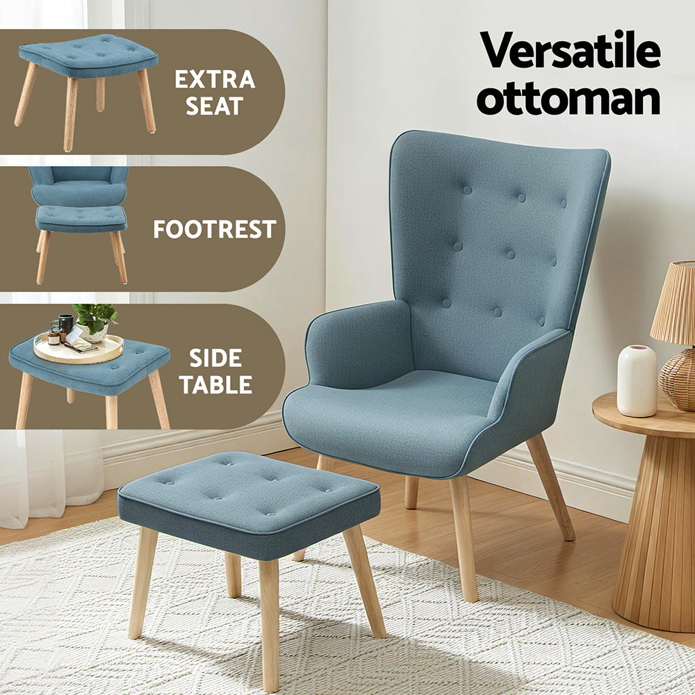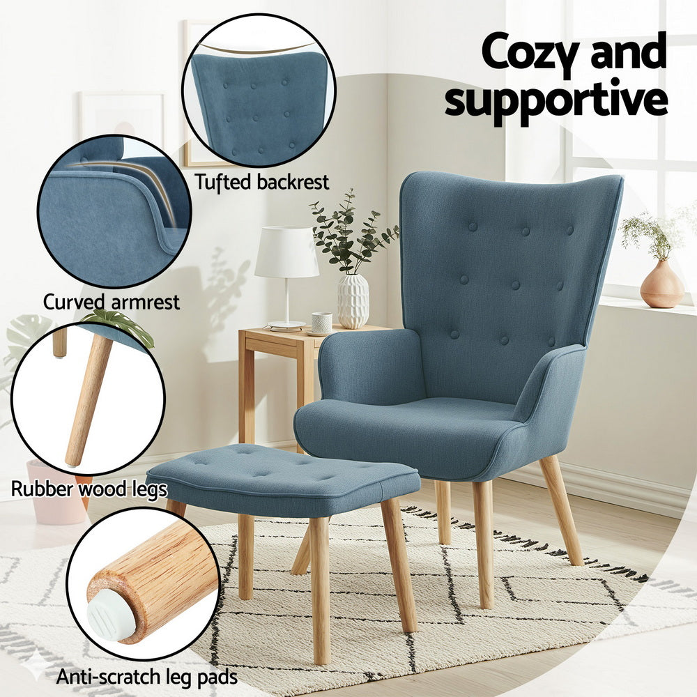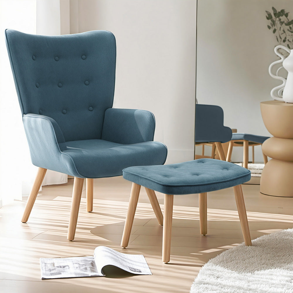 Made with the highest quality craftsmanship, nothing can get you a heavenly comfortable feeling any closer than this. It features a Scandinavian-inspired style that will effortlessly enrich your living room decor. Furthermore, it is available in four gorgeous colours. So style the way you want to achieve the desired look. The armchair is upholstered in premium velvet fabric with a rich high resilience foam padding for comfort, and the tufted design also adds extra elegance. Likewise, the ottoman also shares the same attributes. Not least, the sturdy rubber wood legs are splayed to give this ensemble better support and durability, as well as a unique stance from any angle.