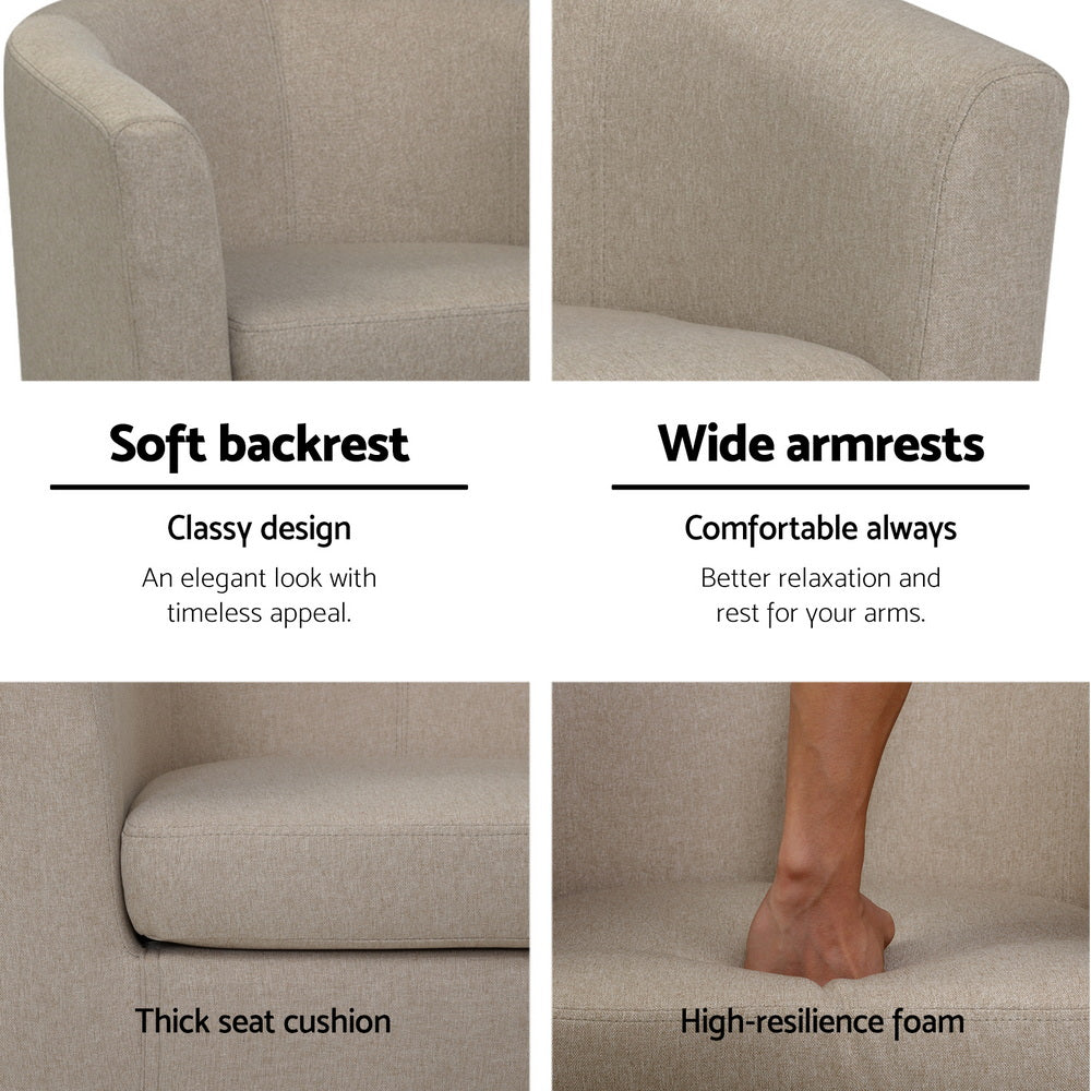 Sophistication extraordinaire. Timeless appeal. The Artiss Abby Armchair is the epitome of modernistic style with its clean lines and simple profile. Upholstered in faux linen fabric, the Abby Armchair is a full size chair with generous seating space. The extra thick foam padding ensures ultimate comfort with exceptional support while the contoured backrest feels ever so elegant and smooth. Together with a reinforced wooden frame and sturdy rubber wood legs, the Abby Armchair is guaranteed to stand up to durable use for many years to come. Not least, with its neutral beige hues, the Abby Armchair is a seamless match for any home decor. Don't settle for any armchair in your home. Make it an Artiss Abby Armchair and experience the elegant chic that it can add to your discerning lifestyle.