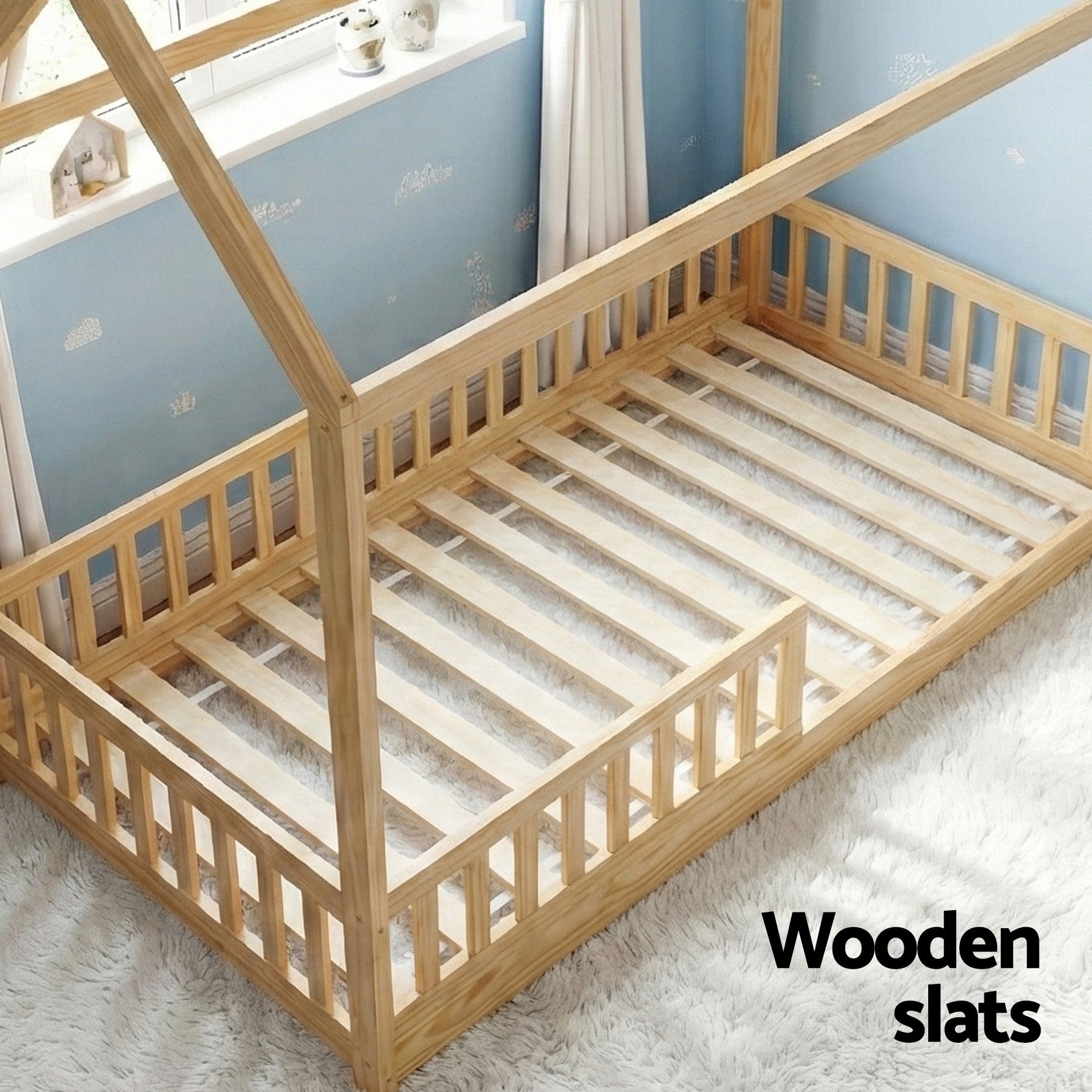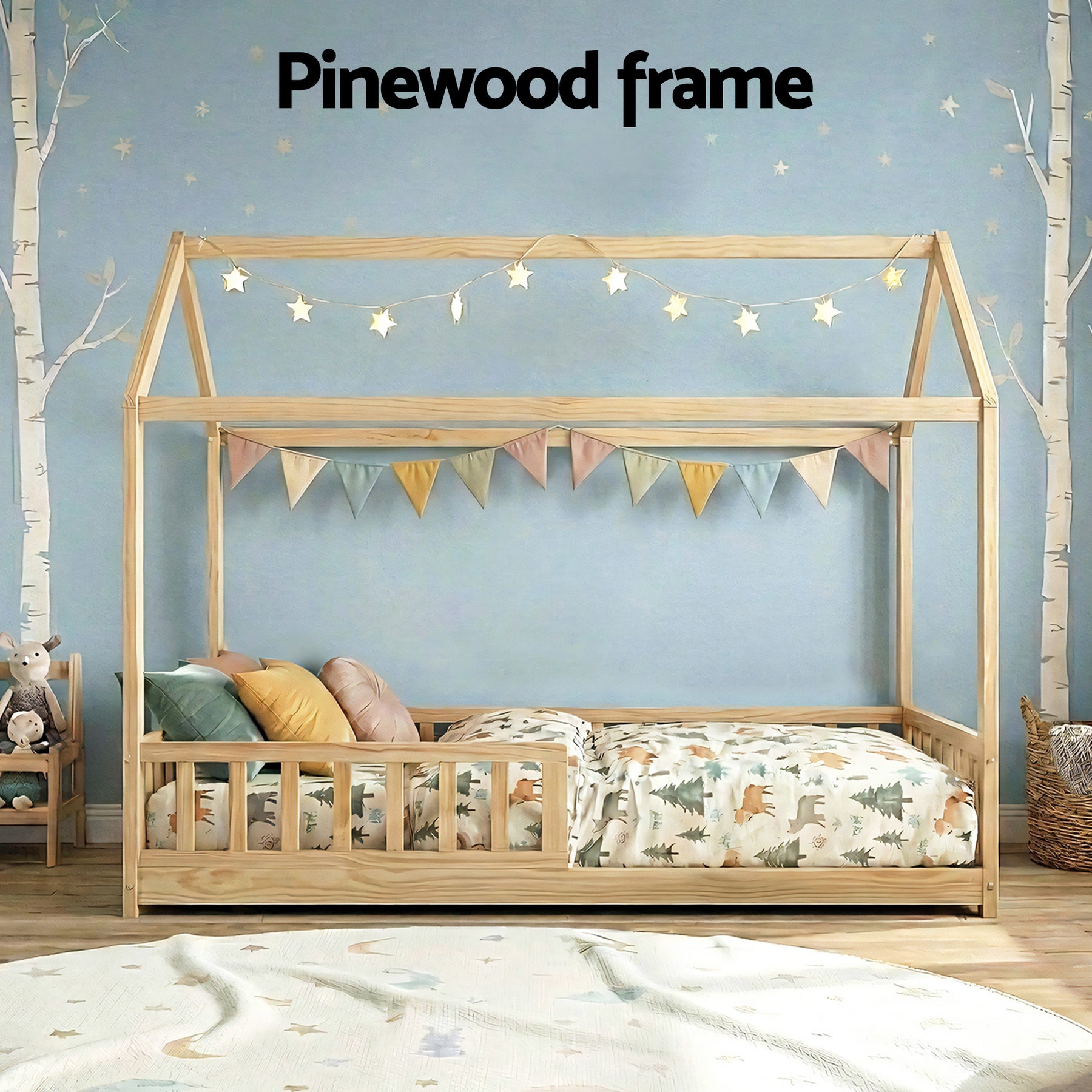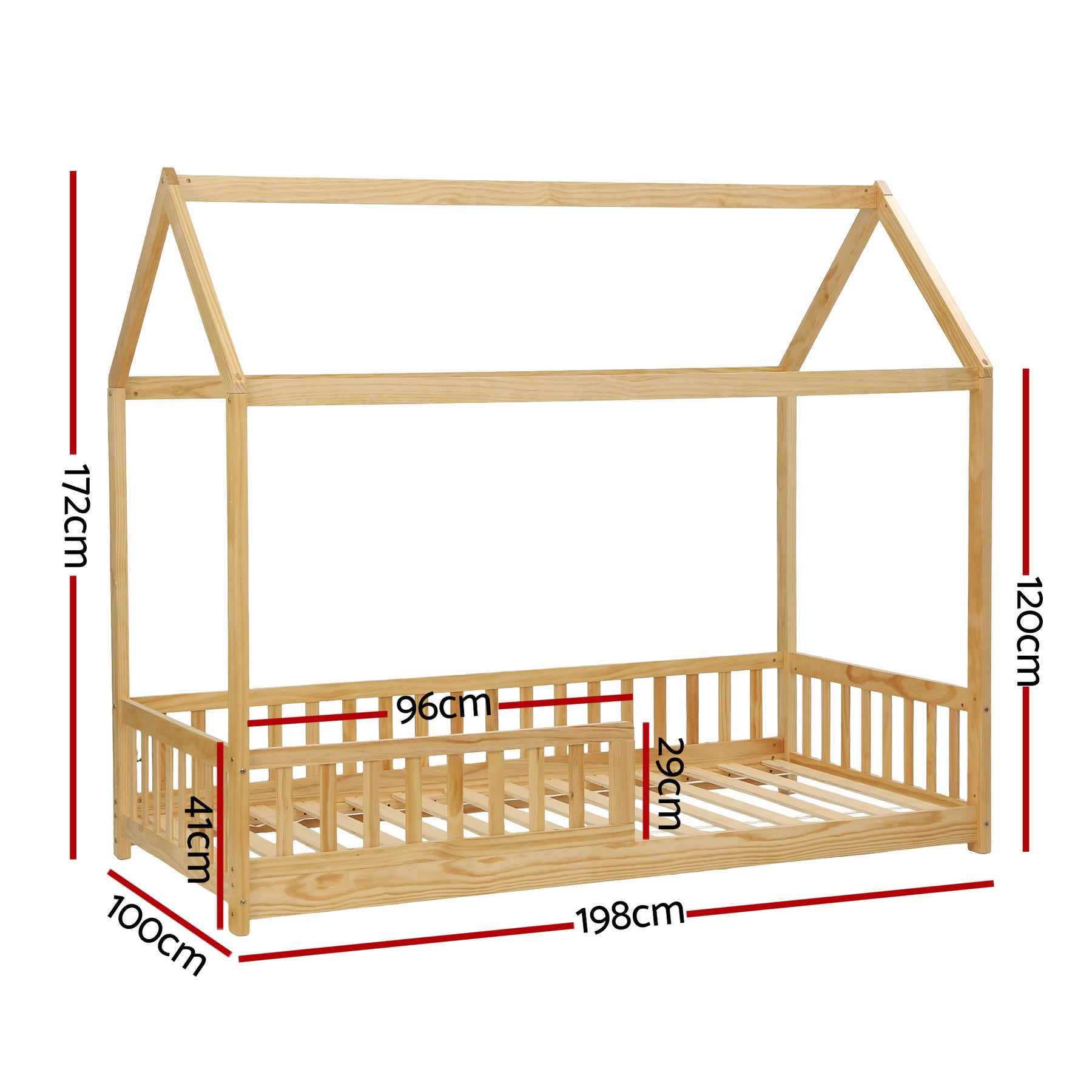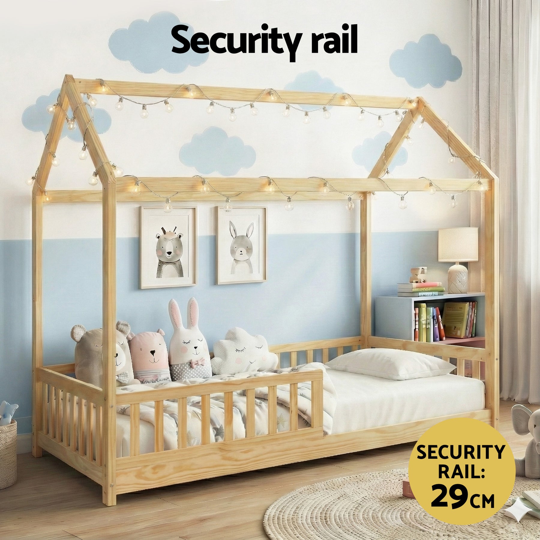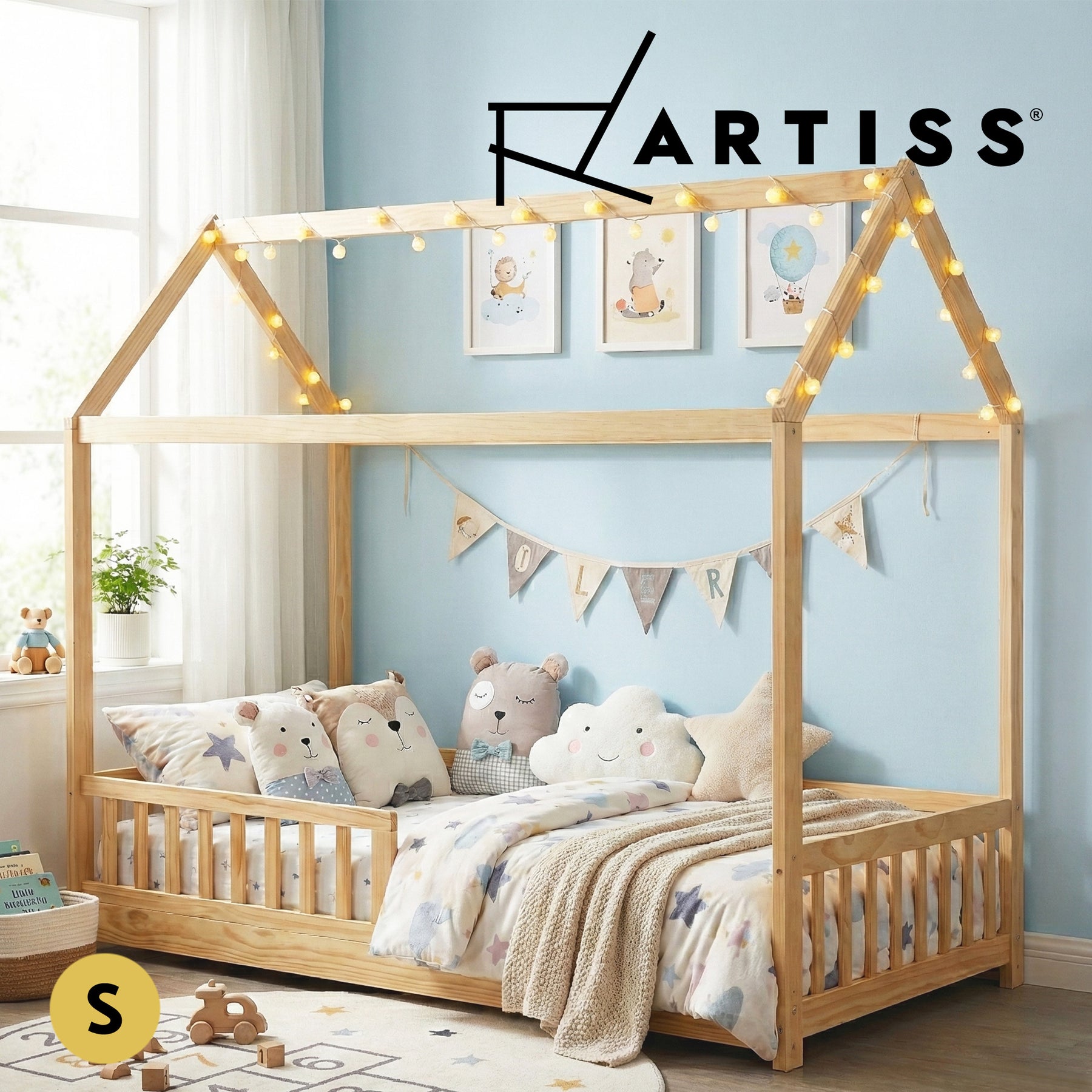 Regular price $377.99Create a cosy sanctuary for your kids where they'll love retiring after a long day of play and study with Artiss Rock bed frame. It features a gorgeous house-shape design that will add an elegant and classic touch to your child's bedroom. The bed frame is crafted from solid pine wood, which makes it quite sturdy in addition to its elegant looks. It comes with heavy-duty steel fixings and reinforced bracket support for ultimate stability and prevents shaking. This bed frame has a slatted base. The slats are well-placed, which allows proper ventilation and prevents build-up of bacteria and germs. Furthermore, Artiss Rock bed frame comes SGS-tested with non-toxic paint finish that ensures your child's safety, and the smooth finished edges prevent from any accidental injuries. It also comes with side rails of ideal height that prevents falls while asleep. The Artiss Rock bed frame has been thoughtfully designed. It's easy to keep clean and maintain. Just a simple wipe with dry cloth will do the job. Bring home this Artiss Rock wooden bed frame for your kid's bedroom today.