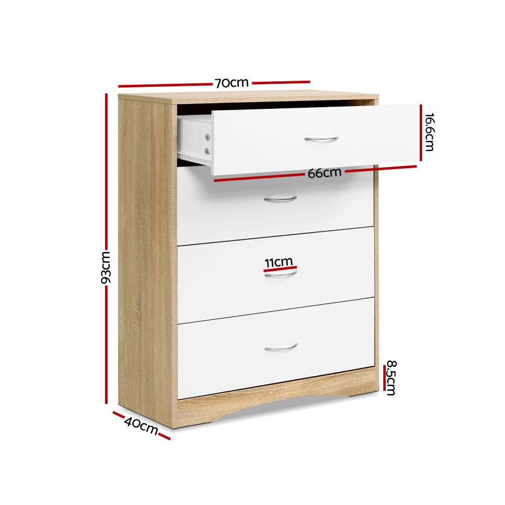 Regular price $221.99Introducing our Artiss Chest of Drawers. With four spacious drawers, each fitted with a smooth glide mechanism, it provides ample storage to keep your space organized and clutter-free. This chest of drawers, offering a blend of style and utility, is an unmissable addition to your furniture ensemble.