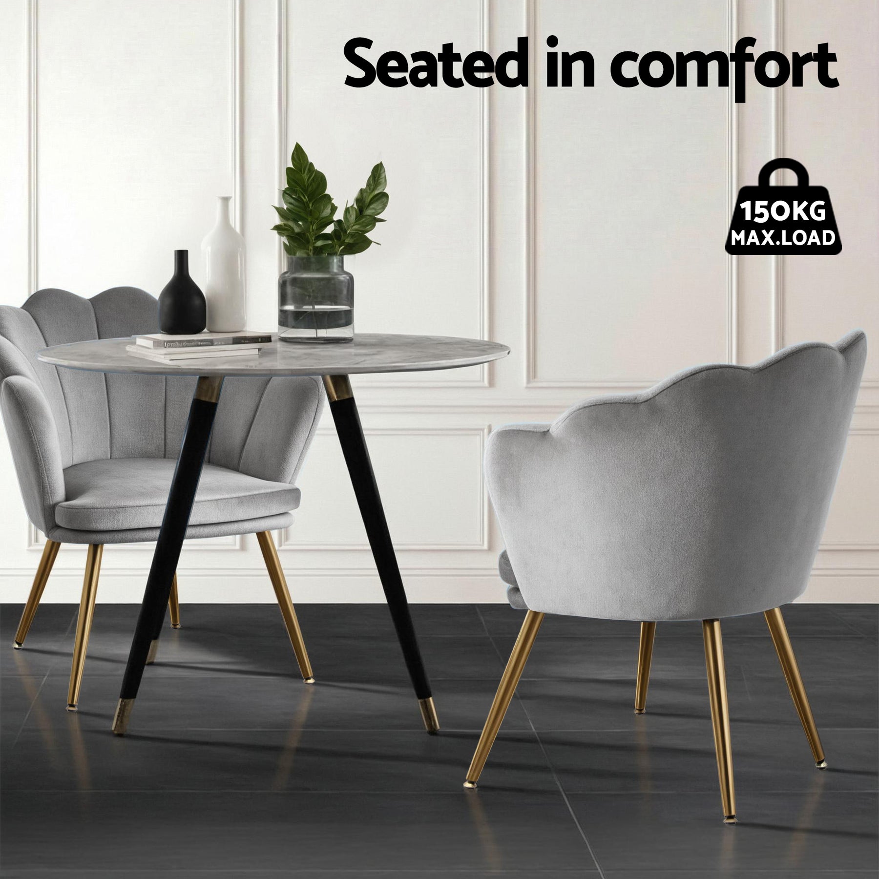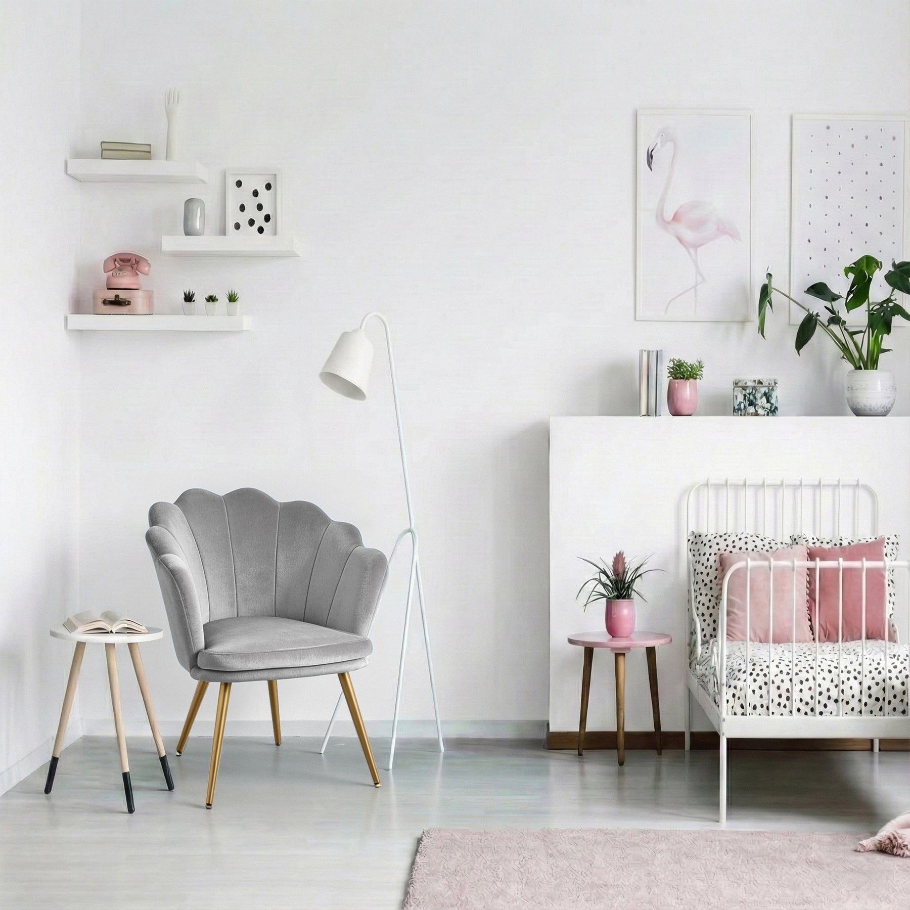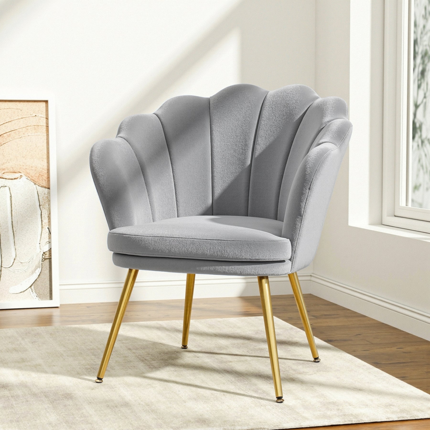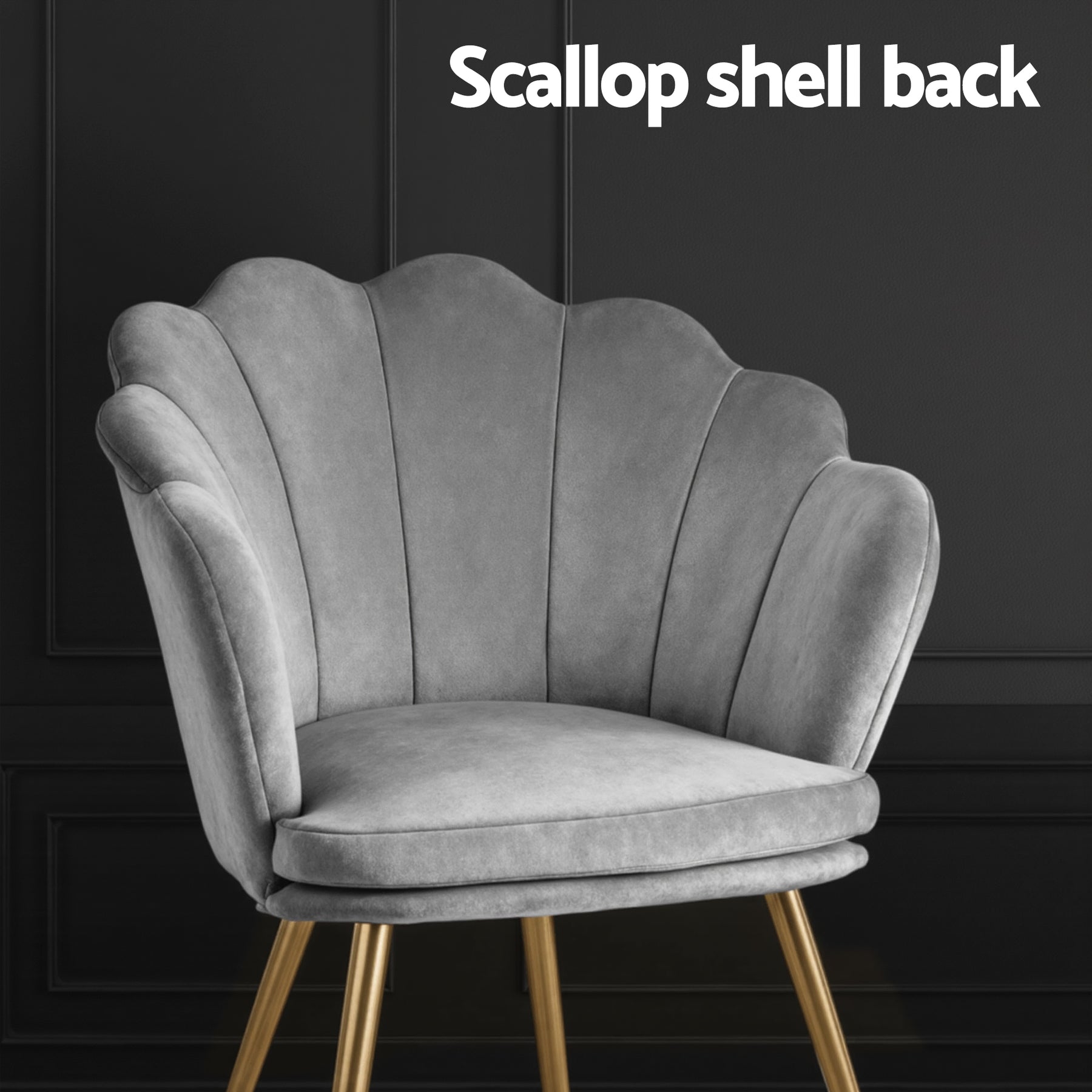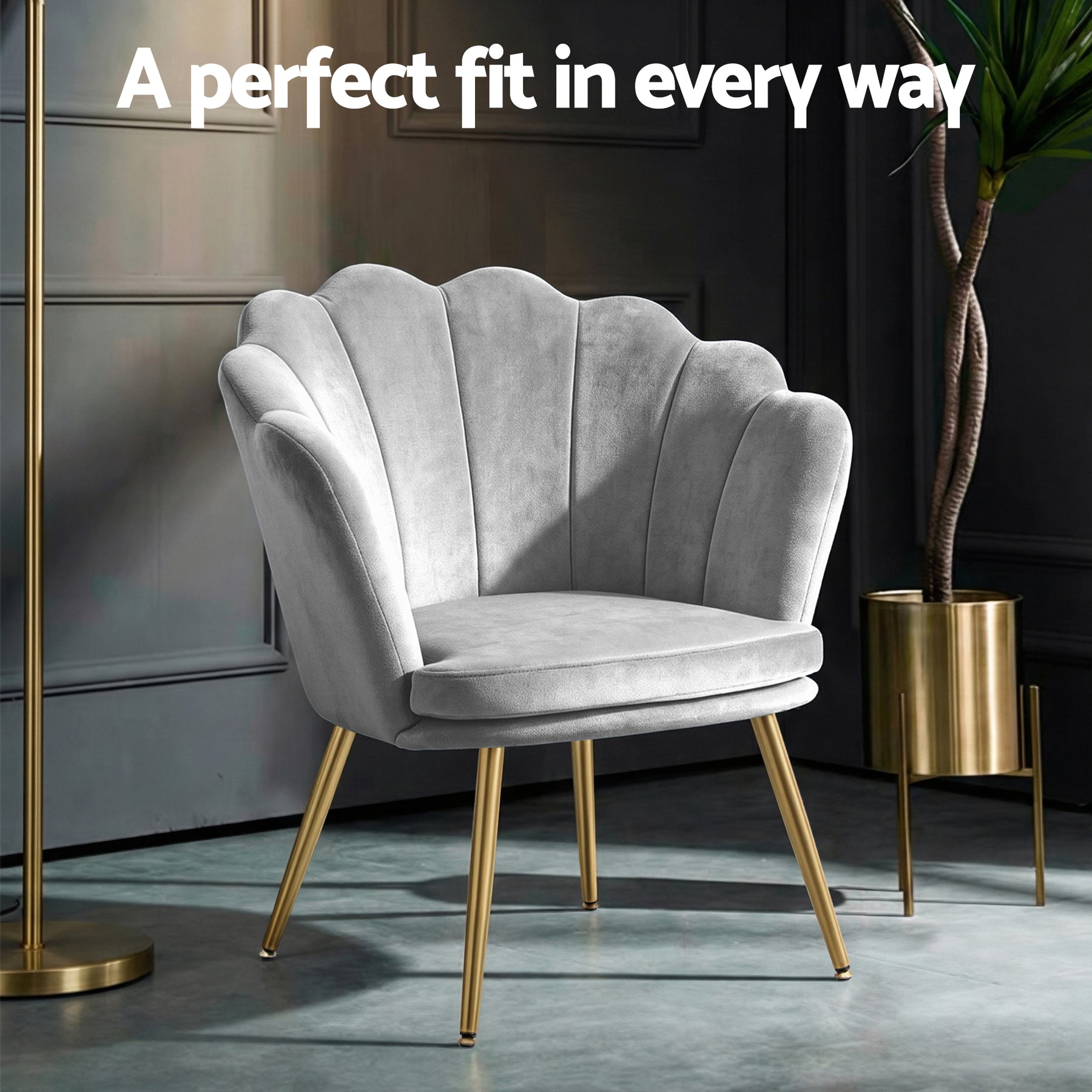 Iconic design. Timeless appeal. Our Artiss Armchair is the epitome of trendsetting style designed for the bold and passionate. With its thick padding of high resilience foam and velvet fabric upholstery, the armchair is perfect as a reading chair or a favourite relaxation seat. The vintage-style scallop shell back wraps around and hugs your body to provide perfect support and comfort. The splayed metal legs in glamorous gold give the armchair loads of character as well as providing a very stable base. Not least, the workmanship is meticulous with the fluid corners and sturdy wooden frame. The armchair will blend well with any setting from classic to contemporary and will also soften the flow of rooms with angular furniture and accents.