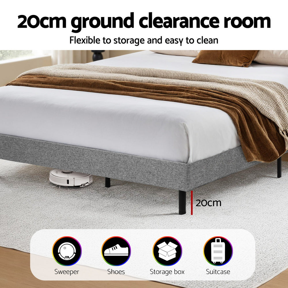 Regular price $374.99Elevate your bedroom with the Artiss King Single Storage Bed Frame. Features smart RGB LED lights offering flexible ambiance settings. The practical headboard provides multi-layer shelving, while discreet under-bed space offers ample storage. Relax against the comfortable padded and tufted headboard. Built with a durable timber and steel frame and supportive LVL slats, this reliable platform bed frame supports King Single mattresses. The modern grey faux linen finish complements contemporary decor. Assembly is straightforward.