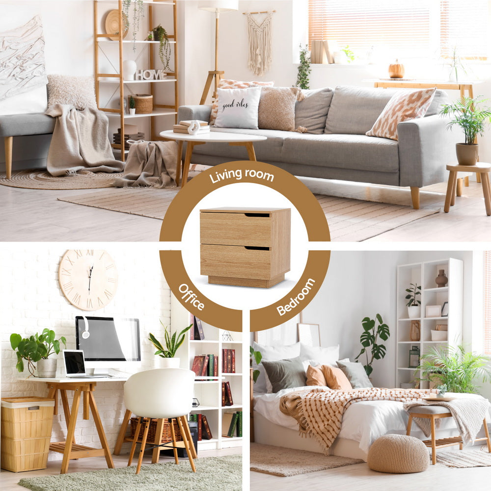 Regular price $132.99Crafted from durable E1 particle board, this Artiss bedside table boasts ample storage with two drawers, adorned with air gap handles. The easy-clean surfaces resist stains, perfect for busy households.It effortlessly fits into living rooms, lounges, bedrooms, or studio apartments.