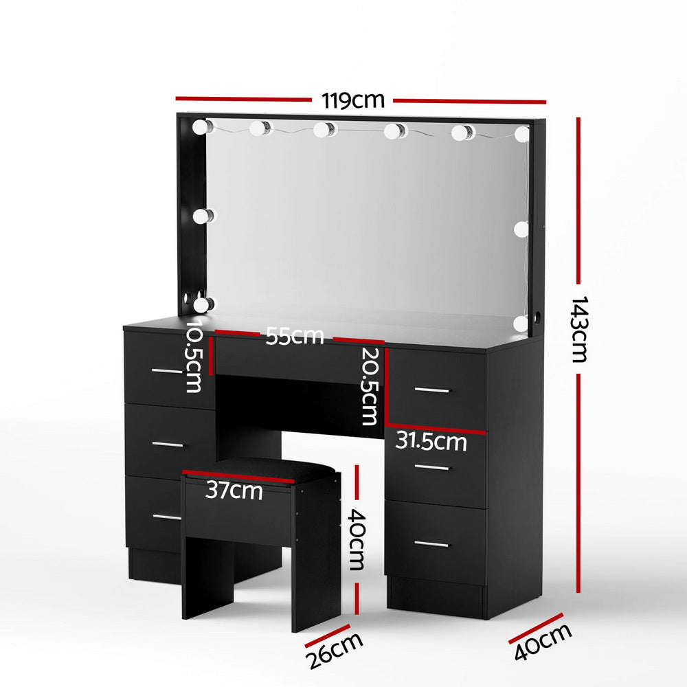 Artiss Dressing Table Vanity Desk Set Stool 10 Led Bulbs Black